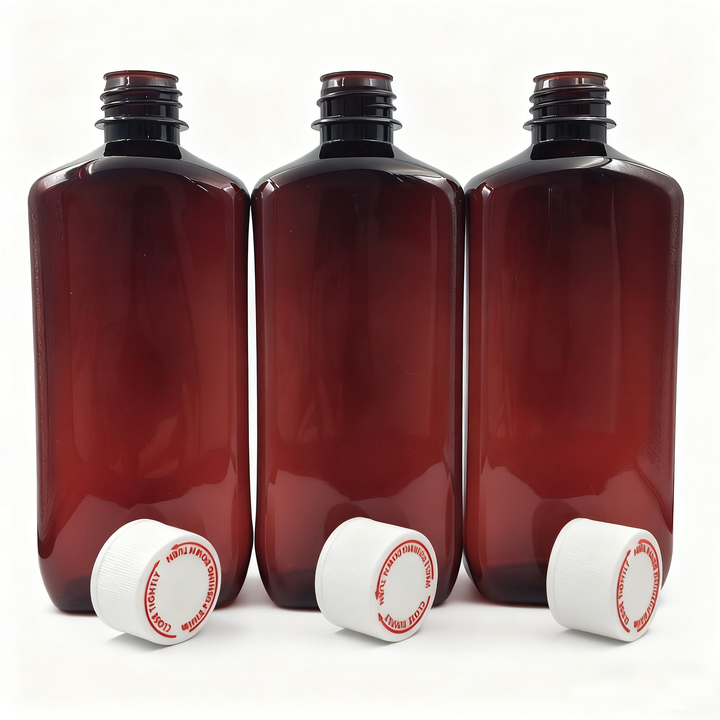Botellas de Plástico PET de 500 ml, Envases para Líquidos con Tapas de Rosca CRC para Uso Médico, Forma Redonda, Impresión Serigráfica